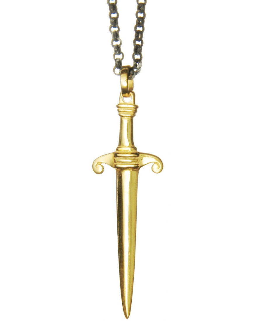 Symbol der Willensstärke und Durchsetzungskraft. Das Schwert ist in Silber antik, 18 Karat vergoldet und Oxid schwarz erhältlich. Kette separat zu bestellen, hier EINS BERLIN ERBSKETTE in 4 mm.