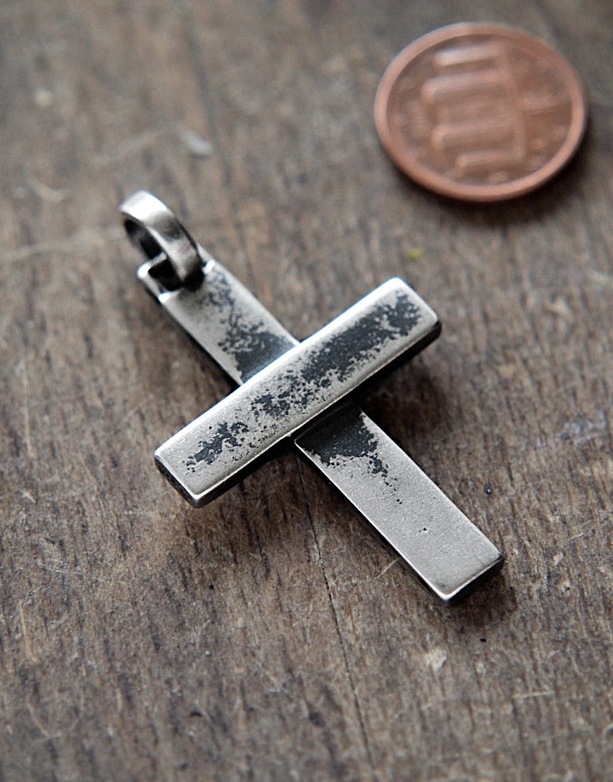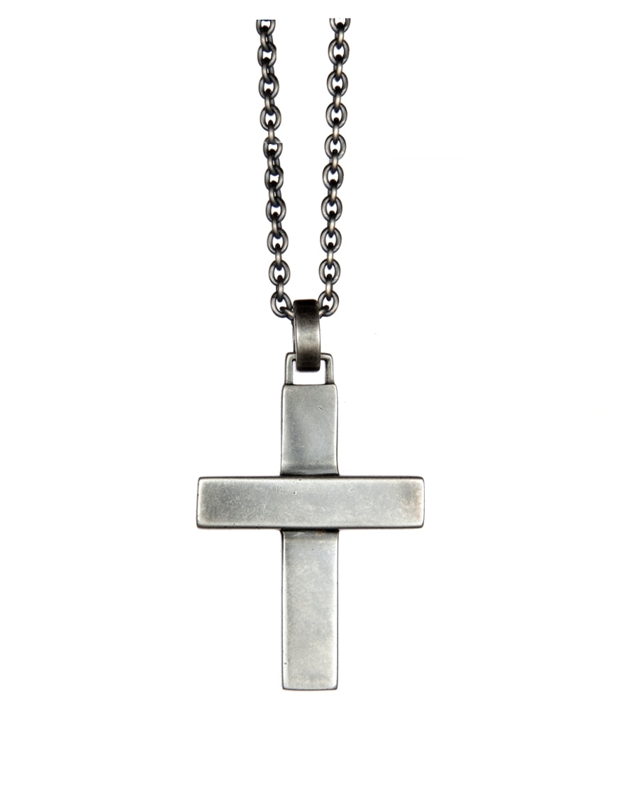 Schlichtes und strenges Kreuz für die Anhänger des wahren Glaubens. Eine ausgewogene Komposition aus Sterling Silber mit einem fein patinierten Finish versehen.
