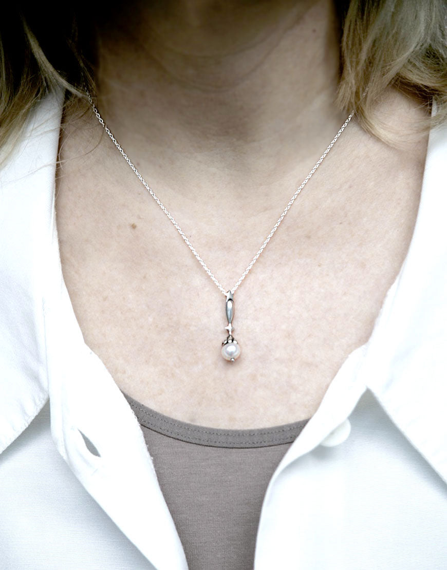 Material: Aus 925er Silber handgefertigt besticht dieser Anhänger durch florale Linien, die die Süsswasser Zuchtperle umspielen. Kreiert bei uns im Atelier in Berlin.