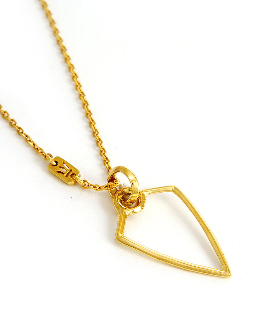 Material: Aus 24 Karat vergoldetem 925er Silber handgefertigt besticht dieser Anhänger durch elegante Linien mit einer Andeutung von schnörkelhafter Historie. Kreiert bei uns im Atelier in Berlin.