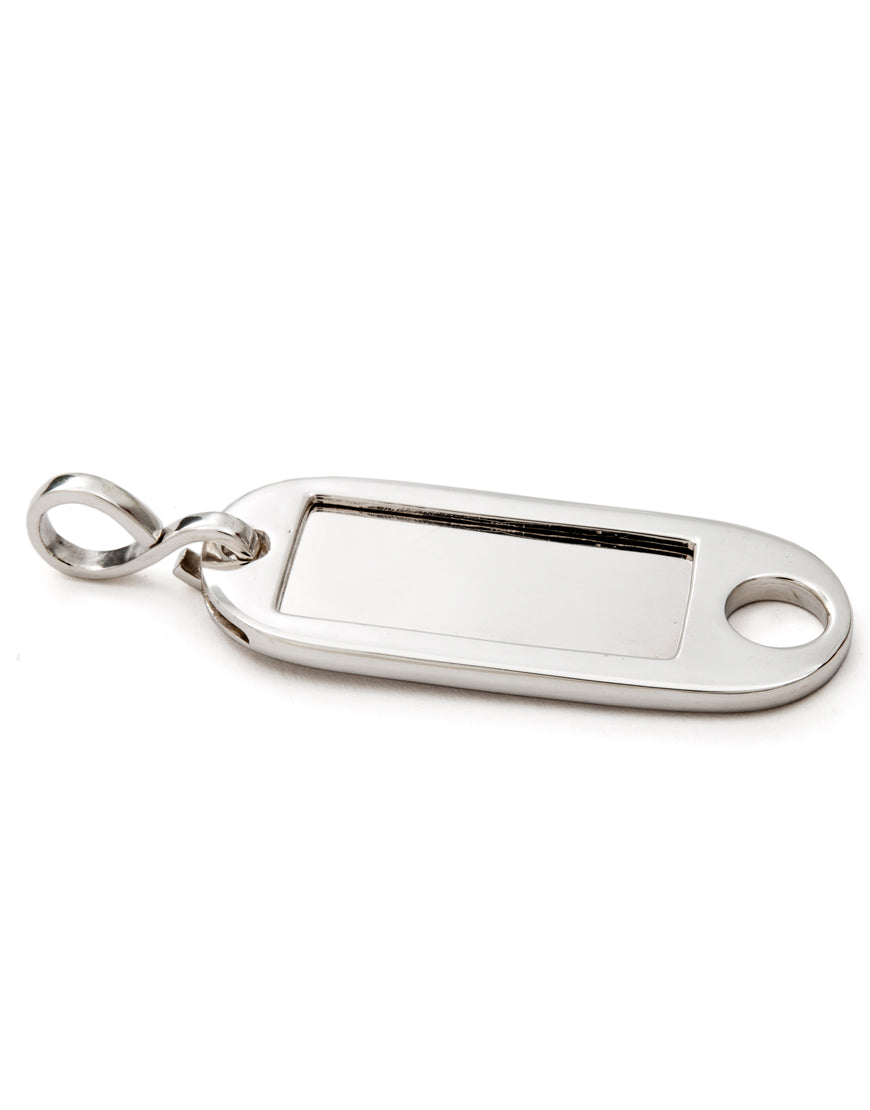 Der handgefertigte Schlüsselanhänger ist aus Sterling Silber, mit silberglänzender Oberfläche. Kreiert in unserem Berliner Studio.