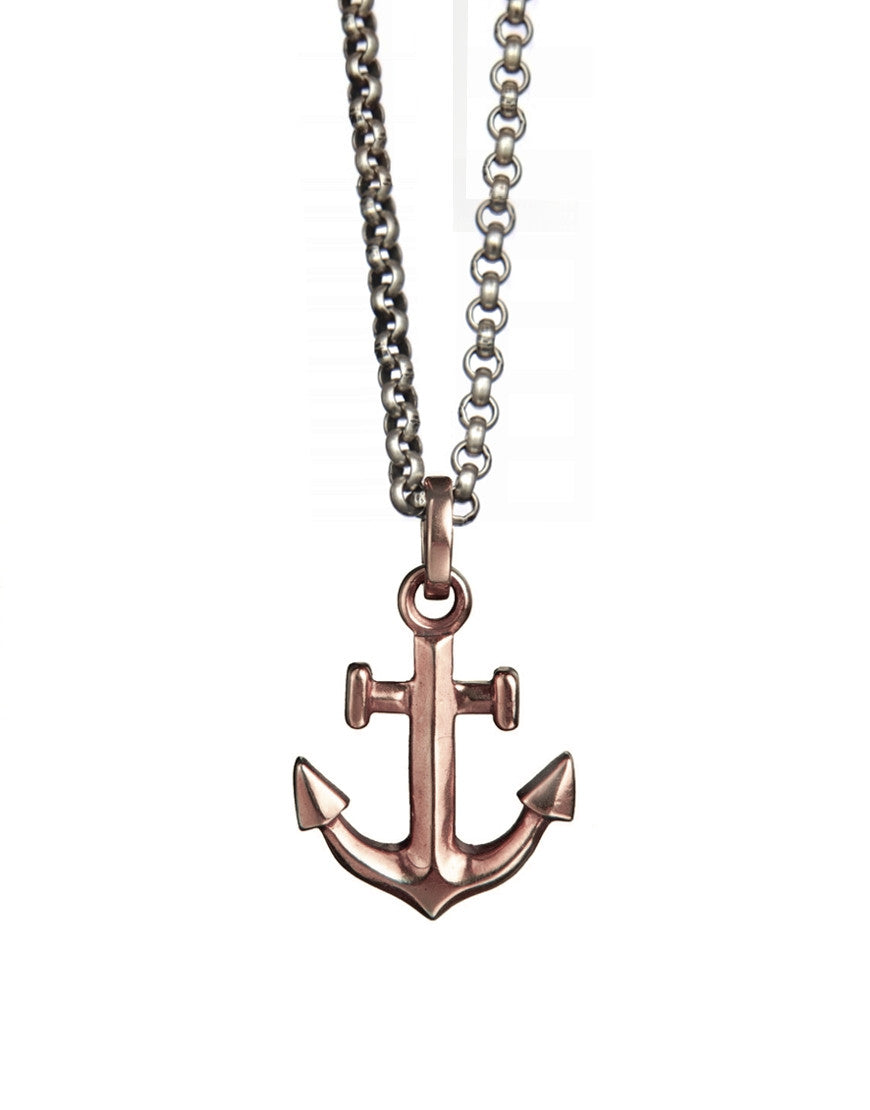 Ein schöner, maskuliner Anker aus massivem 925er Silber gearbeitet in Silber antik (patiniert) und mit 24 Karat Vergoldung in Gelb- und Rotgold erhältlich. Kreiert in Berlin.